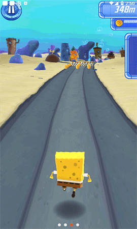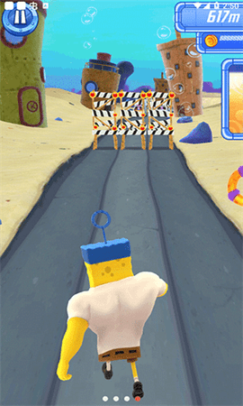 在玩家可以向下滑动来滑铲躲避障碍物。海绵宝宝跑酷拥有许多关卡,每一关的场景、陷阱和障碍物都独具特色,给玩家带来新鲜感和挑战性。每个关卡的画面都充满美丽的风景,让玩家沉浸在游戏的世界中。
