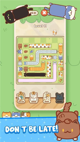 猫咪堵塞是一款适合在空闲时间放松身心的小游戏。除了带给玩家愉悦的视觉体验外,还能锻炼玩家的逻辑思维和策略规划能力。玩家需要选择正确的顺序,点击正确的猫来解决难题,引导所有可爱的猫到达安全的地方。地图上散布着各种零食,玩家需要收集所有零食,有时零食的分布会形成复杂的路线,需要玩家仔细思考和规划。