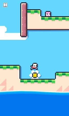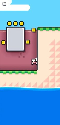 在玩家需要收集硬币来提升成绩,解锁新的内容。有些障碍可能需要玩家在特定时机通过,或者使用特殊道具才能克服。游戏采用了复古像素画风,给人一种怀旧和新鲜并存的游戏体验。由于游戏的便携性很强,适合所有年龄层的玩家,可以随时随地进行游戏,即使只用一只手也能享受的乐趣。