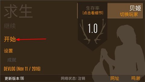 在玩家可以选择不同角色(如贝姬、贝爷、罗)和不同的野外求生场景(如独木河、山脉),以及不同的求生难度(如新手难度-野营、专家难度-生存)。玩家需要关注基本生存要素,包括寻找食物、水源、制作工具和建造庇护所。