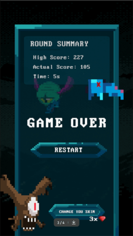 在玩家可以通过点击开始闯关直接进入关卡,根据操作步骤滑动屏幕,移动蝙蝠躲避敌人和障碍物。完成成就可以获得红宝石奖励,用于解锁新的炫酷皮肤。2D像素画面风格让玩家更好地体验飞行生存的挑战过程。