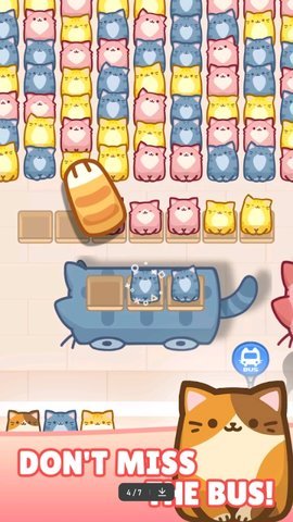 拥堵的盒子猫是一款充满趣味和挑战的休闲游戏。在玩家需要按照提示信息来匹配自己的猫咪,并将它们从果酱中解救出来。这款游戏结合了拼图和消除的元素,玩家需要将猫咪移动到对应颜色的车辆上,以消除相同颜色的猫咪。通过点击猫咪来移动它们到车辆上,完成消除的任务,玩家可以将猫咪送到不同的地方领养。