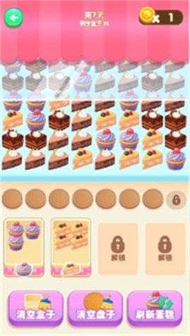 游戏内包含多个关卡,随着关卡的提升,消除蛋糕的玩法变得越来越复杂。玩家需要通过点击蛋糕将下层蛋糕按照盒子的需求排列,不断消除蛋糕,直至装满盒子并完成任务。玩家还可以通过满足各种顾客的要求来获得金币,用金币来装扮自己的蛋糕店,提升游戏体验。