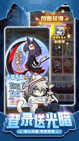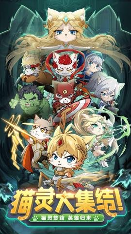 2、玩家可以召唤各种各样的传说喵英雄,最终通过层层考验,与自己的爱猫蛋挞接到正义喵神的召唤。
