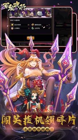 1、背景故事以日本为演出舞台,轻松休闲的放置玩法,将古老神话中的妖怪们化身为俊男美女,而它们此时就朝你进攻。