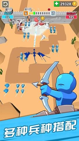 1、玩家可以控制自己的军队组成编队或指挥单个单位,拥有每个火柴人的控制权。