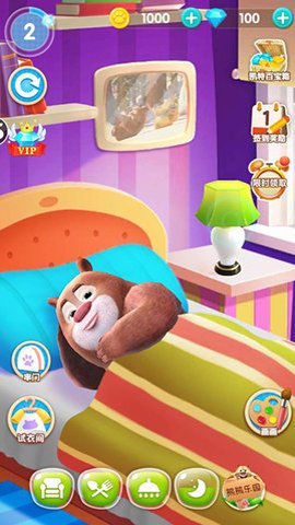 2、除了基本的照顾熊大熊二的饮食起居和一起玩耍之外,游戏还提供了装扮玩法,可以自由定义壁纸、地板、床垫、窗户等等。