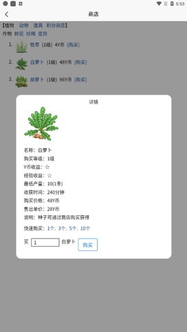 1、玩家可以购买在自己级别内能够买到的最贵的种子,然后通过提升产量来获得更多的收益。