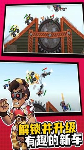 1、玩家可以解锁并升级有趣的新车、强大的武器和有用的物品,以便扭转战局。