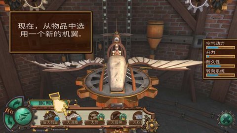 2、每次获得的金币可以回到基地改装飞机,飞机部件分为大机翼、小机翼、安定翼、推进器。