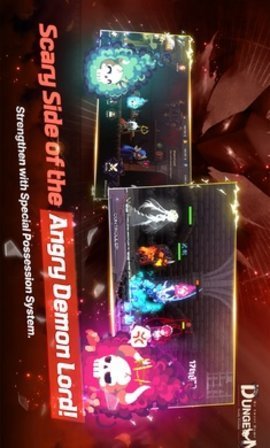 1、作为一个处于弱小灵魂状态的魔王,玩家可以通过附身来操纵手下,为了守护地下城,开始大作战!玩家需要使用策略来阻止攻击地下城的勇士们,进行战术与他们正面作战。