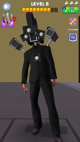 2、玩家可以在战斗中获得新的马桶人角色,并收集稀有的道具和资源,丰富游戏体验。
