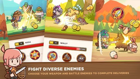 邮差骑士2国际服是一款趣味的放置冒险点击挑战手游。游戏以流畅爽快的砍杀体验为特色,玩家可以在魔幻大陆展开成长之旅。游戏采用了精致的二次元手绘风格画面,给人一种视觉上的享受。并且游戏还提供了多周目的挑战互动玩法,让玩家能够不断地沉浸在冒险的征途中。