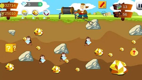 3、石头分为两种,一种是笨重且不值钱的障碍物,另一种是可以收集黄金的石头。