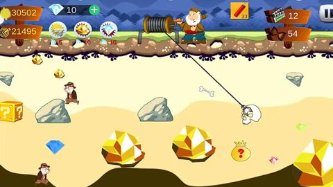 黄金冒险矿工是一款非常经典的挖掘游戏,它的玩法简单易上手,适合不同龄段的玩家。玩家需要使用卷轴和爪子来淘金,收集各种宝藏,例如钻石、银、石头、金钱、现金、动物等等,以获取更高的分数。