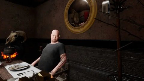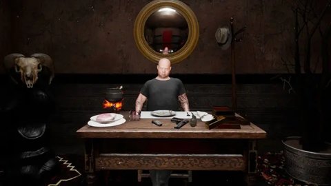 3、当最后一个房间的门打开时,玩家会发现黎叔坐在桌子后面,凝视着自己,好像知道一切会发生一样,冷静地等着自己解开他布好的局。