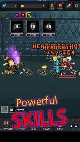 3、 培养幸存者是一款像素风格的塔防射击僵尸生存游戏。