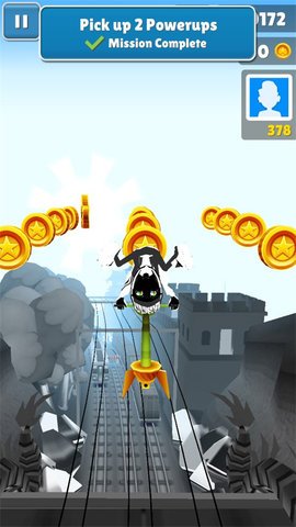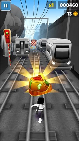 2、在玩家需要在地铁轨道上奔跑、跳跃、滑行以及绕过各种障碍物,收集硬币和道具,尽可能地跑得更远。