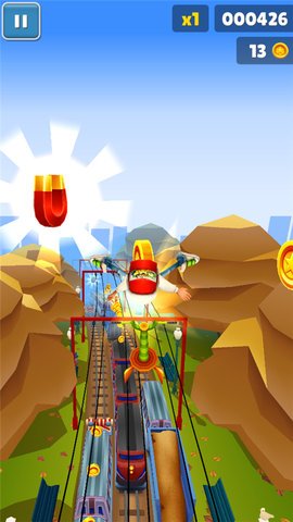 3、玩家需要控制杰克在高速行驶的地铁轨道上进行奔跑,并躲避列车、隧道壁板、桥梁等各种障碍物。