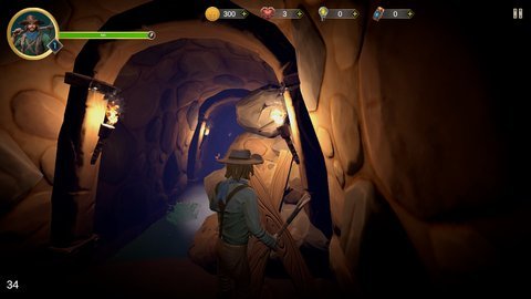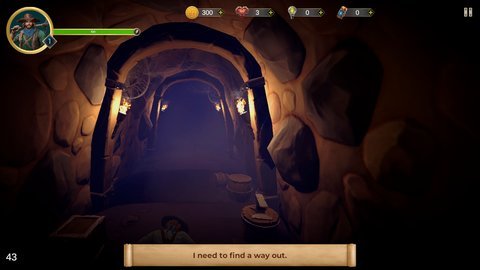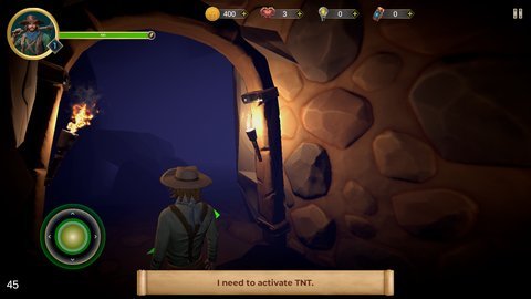 2、通过简单的手势操作,玩家可以控制旷工移动、探索和收集物品,解开谜题。