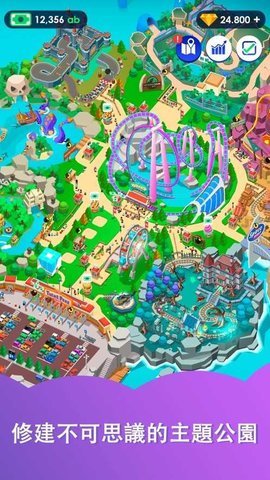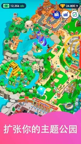 3、闲置过山车游戏是一款模拟经营类游戏,玩家需要经营一家过山车主题公园,在设计、建造和维护过山车设施的同时吸引游客并赚取资金。