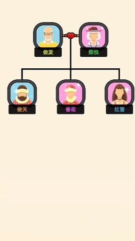 2、在游戏的家族树关卡中,玩家将看到不同性别、年龄、肤色、发型的角色组成的家庭。
