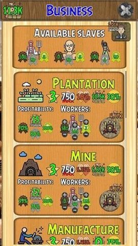 1、玩家可以从自己的奴隶工作中获得收益,利润越大,奴隶越从属于玩家,收益也越大。
