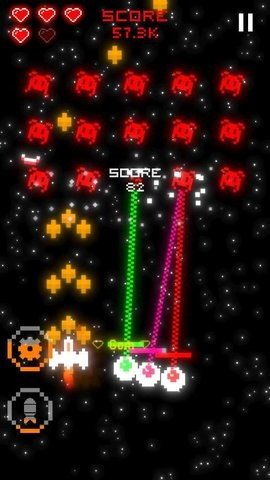 4、玩家可以自由打造属于自己的飞船,选择色彩丰富的飞船在竖版场景中与外星人进行对战,体验极致快感。