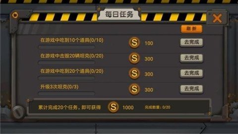 坦克歼灭战是一款集坦克大战、坦克对战、坦克手游于一体的手机游戏。每天都有丰富的日常任务等待着玩家去完成,通过这些任务可以获得金币,用来升级和改装自己的坦克。游戏还设有比赛排行榜,让玩家可以展示自己的实力。