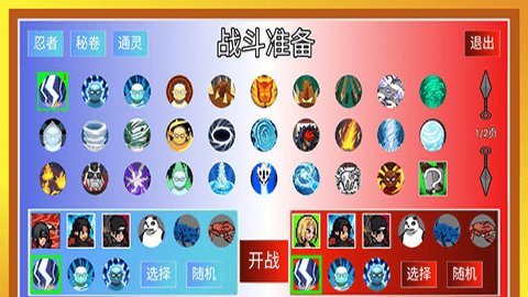 3、之后,玩家可以选择自己和人机对应的角色、忍卷、通灵兽,也可以进行随机选择,然后点击开始即可。