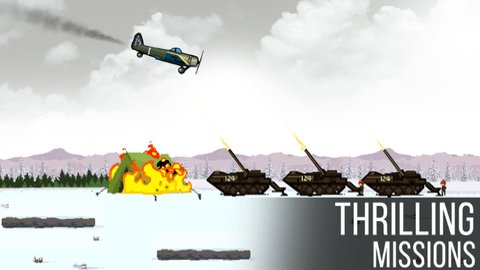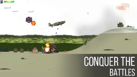 3、地面会有防空部队攻击玩家,玩家需要控制飞行高度,利用自带弹药库打击地面部队。