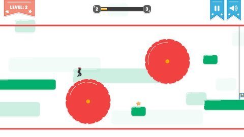 2、通过点击屏幕来控制火柴人的前进和向上飞行,停止点击后火柴人会自然下落。