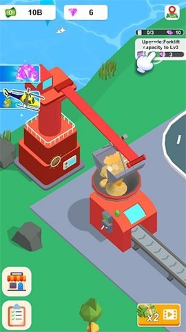 1、游戏融合了多种不同的玩法和元素,玩家在解锁完成任务后可以自由选择自己喜欢的玩法,收集不同宝石的原料,开垦矿区,扩大工厂的经营范围。