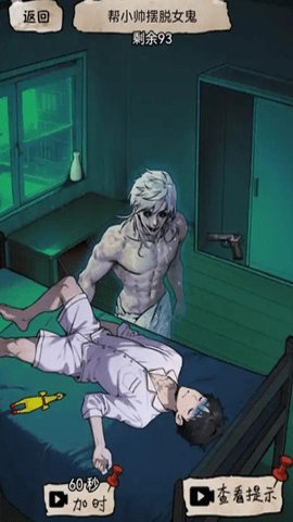 2、全新关卡来袭,玩家需要把瓶子里的鲜花给第三个女鬼,把抽屉里的铜钱给第四个女鬼,打开衣柜把小偷给第七个女鬼。