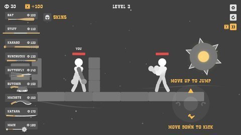 4、左侧控制火柴人抓握武器,右侧控制火柴人移动和攻击。