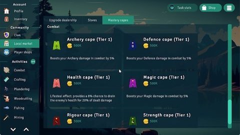 1、玩家可以点击商城图标购买一些实用的武器或工具;打开空闲部落游戏,选择游戏模式;建设防御设施,抵御外敌入侵;探索周边区域,扩大部落领地,发掘新的资源点。
