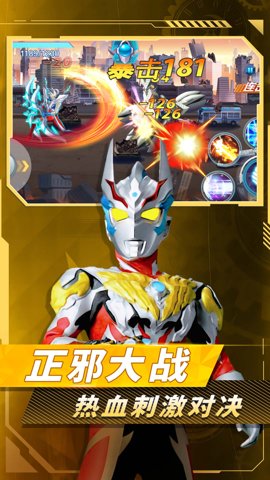 3、立即加入游戏,集结你的奥特战队,迎战邪恶的巨大BOSS,引爆全新的英雄格斗热潮。