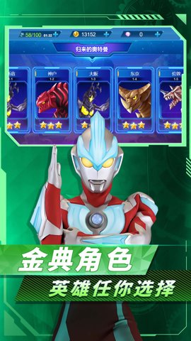 3、玩家可以选择不同的奥特战士,每个战士都有着独特的技能和特点,让玩家可以根据自己的喜好和战术选择最适合自己的战士,展开一场场惊险刺激的战斗。