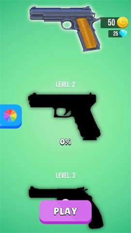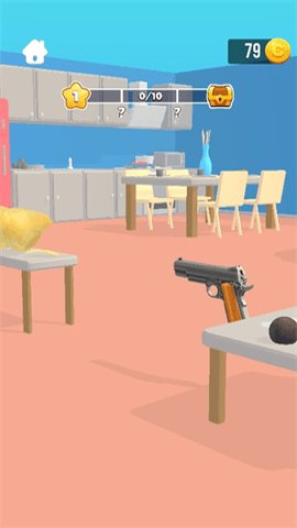 1、玩家在游戏中操控一支手枪参与跑酷挑战,灵活操作躲避障碍物,不断升级手枪等级,并在抵达终点时成功击中宝箱,获得丰厚奖励。