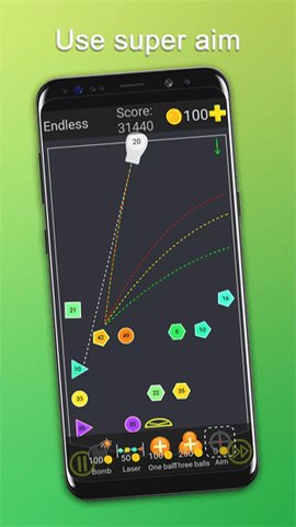 2、球vs砖是一款弹射闯关游戏,玩家需要控制大炮发射炮弹,让炮弹在砖块和墙壁之间弹射,只有消灭所有砖块才能顺利过关。