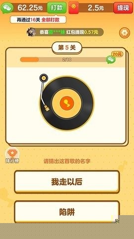 玩法扩展至关卡推进模式。玩家需要在一个关卡内连续答对设定数量的歌曲,才能解锁下一关卡。每通过一个大的关卡阶段,可以开启一个额外的奖励红包,作为阶段性的成就激励。
