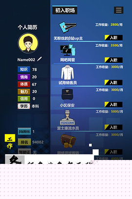 玩法核心是资源管理与人生规划。玩家需要管理的最重要资源是时间和精力。每天、每周、每月都需要合理安排工作、学习、休闲和社交活动。一份高强度的996工作可能带来快速的职业晋升和金钱回报,但会急剧消耗健康与精力,限制其他领域的发展。反之,一份清闲的工作可能让你有充足时间发展副业或享受生活,但主业晋升缓慢。