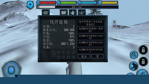 任务与挑战系统提供了结构化的目标。任务类型多样,从线性的生存故事任务(如带领幼崽迁移到安全地带),到开放性的世界挑战(如在一定时间内猎取特定数量的猎物)。完成任务不仅能推进对北极世界的了解,也是获取重要资源和能力点数的主要方式。