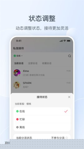 团队协作与状态管理:支持多客服坐席功能,团队成员可以设置各自的在线、忙碌、离线状态。系统可根据状态和负载情况智能或手动分配对话,避免重复回复或遗漏咨询,并内置内部协作备注功能,便于交接班与信息同步。