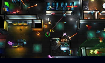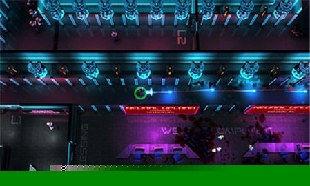 视觉风格强烈地融合了复古矢量图形与现代霓虹光影,营造出一个既怀旧又未来感的赛博空间,色彩对比鲜明的特效让每一次射击和爆炸都极具视觉冲击力。这种独特的美学不仅塑造了辨识度极高的世界观,也使得高速战斗中的信息反馈清晰明了。