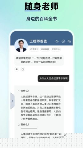1. 精准的认知水平对齐:软件集成了经过教育场景专门优化的大型语言模型,使其在知识讲解和问题解答时,能够精准判断并匹配用户的理解能力。无论是向小学生解释一个成语的典故,还是与高中生探讨一篇议论文的深层逻辑都能使用恰到好处的语言和案例,确保沟通的有效性和知识的可吸收性。