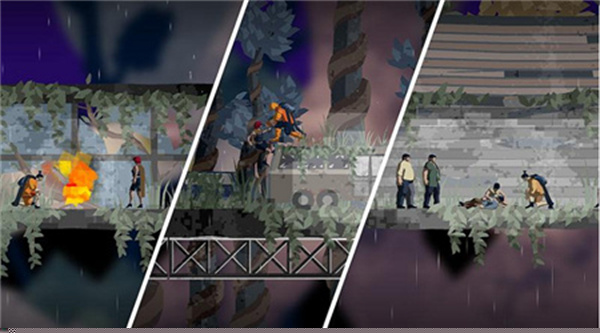 沉浸式的末世环境与氛围营造:游戏采用暗黑基调的美术风格,搭配精细的像素动画,生动刻画了破败都市、幽深地下设施、被植物侵蚀的实验室等场景。阴郁的色调、闪烁的残破灯光以及环境中的细节互动(如可破坏的箱子、摇曳的藤蔓),共同构建出一个荒凉而危险的末日世界,增强了玩家的代入感。