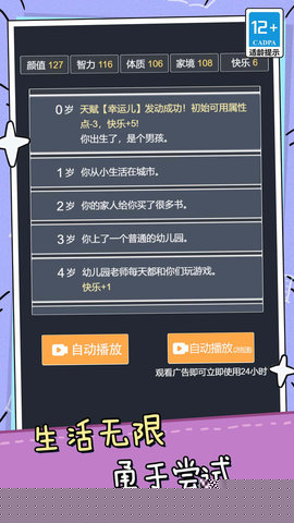 本作是一款深度聚焦于个人叙事与选择影响力的人生模拟文字游戏,摒弃了华丽的视觉堆砌,转而以扎实的文本功底和精巧的叙事设计作为基石,为玩家提供了一个能够完全沉浸的思维剧场。游戏的世界观并非架空幻想,而是根植于现实生活的逻辑与情感共鸣,从升学压力、职场竞争到人际关系的微妙处理,诸多情节都能引发玩家的切身思考。其系统设计最大化选择的价值,确保玩家的每一个决定都不是孤立的们会累积并交织,最终导向数十种风格迥异的人生终章。这种设计理念使得游戏过程更像是在亲身撰写一部互动式小说,玩家的意志是唯一的笔触,而故事的走向与角色的最终形态,都牢牢掌握在玩家自己的手中。