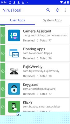 初次使用与概览:从官方应用商店安装并打开VirusTotalMobile后,应用会自动开始扫描您设备中已安装的所有软件。扫描完成后,主界面会呈现一个完整的应用列表。您可以在这里看到每个应用的名称、图标,以及一个简明的安全状态指示(一个数字,表示检测到软件有风险的安全引擎数量)。
