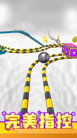 核心操控与移动:游戏采用单指触控操作,在屏幕任意位置左右滑动可控制球体在赛道上的横向移动,向上快速滑动则使球体跳跃。操控响应极其灵敏,玩家需要根据赛道布局实时微调方向,并把握跳跃的时机以越过沟壑或登上高台。
